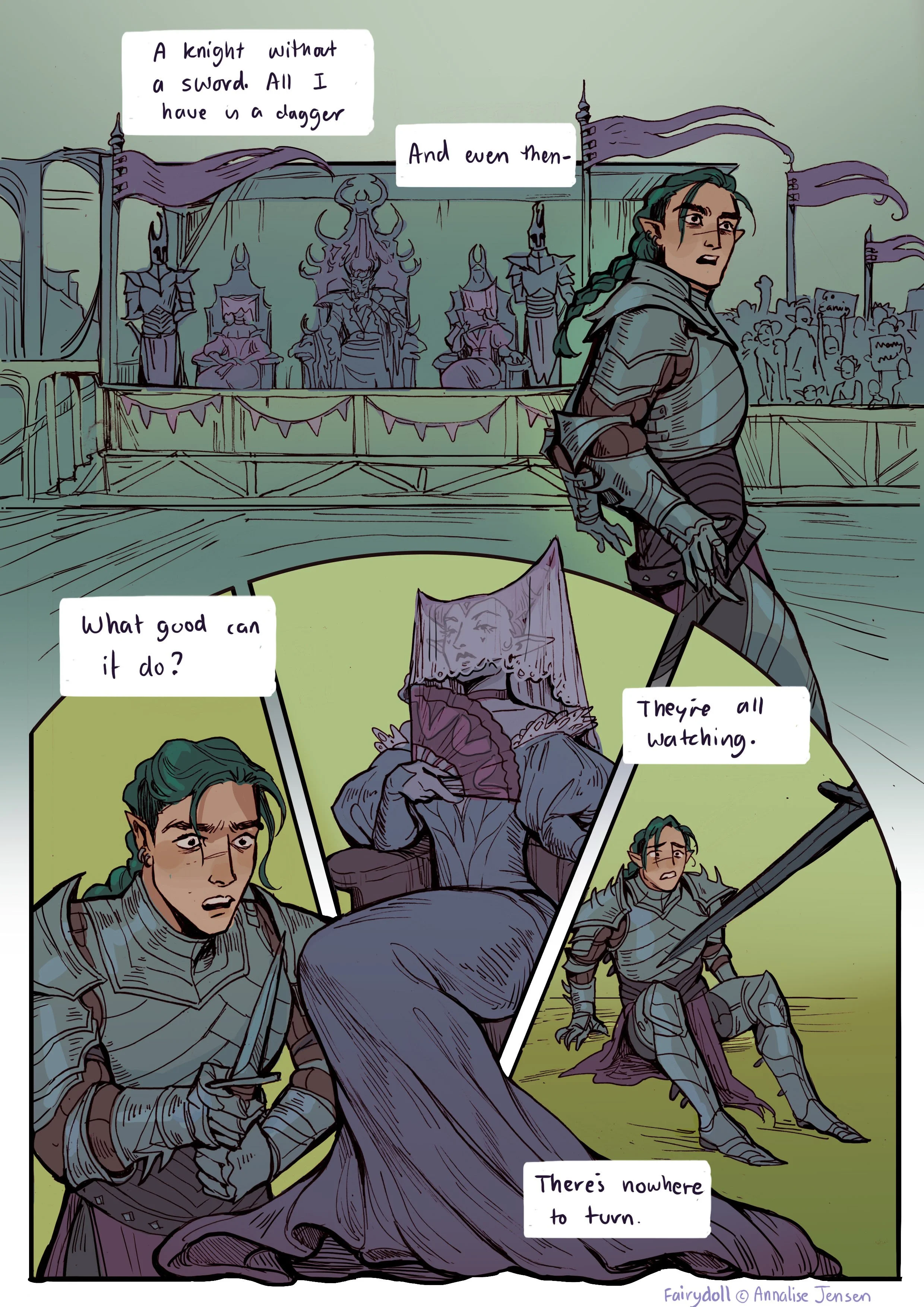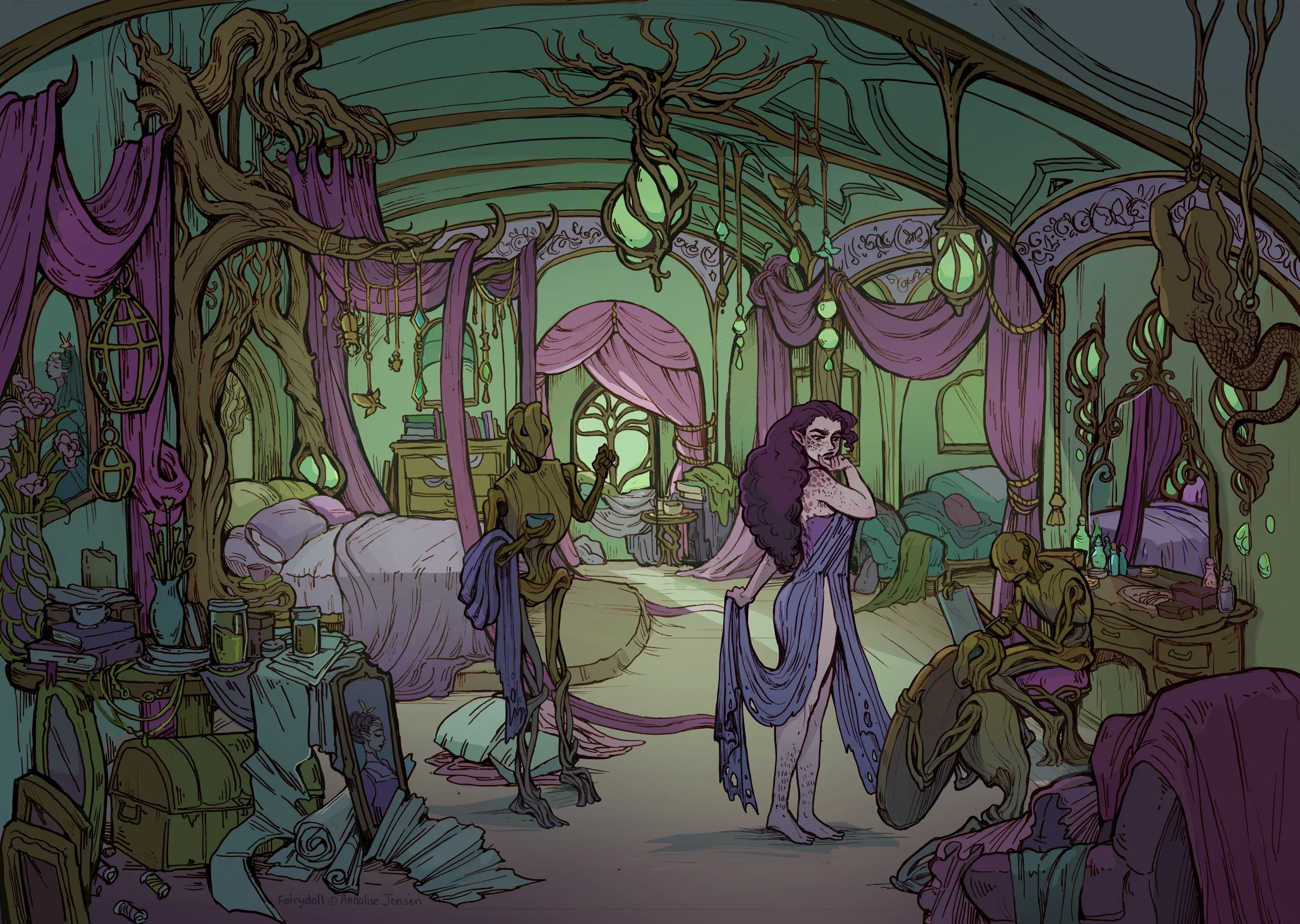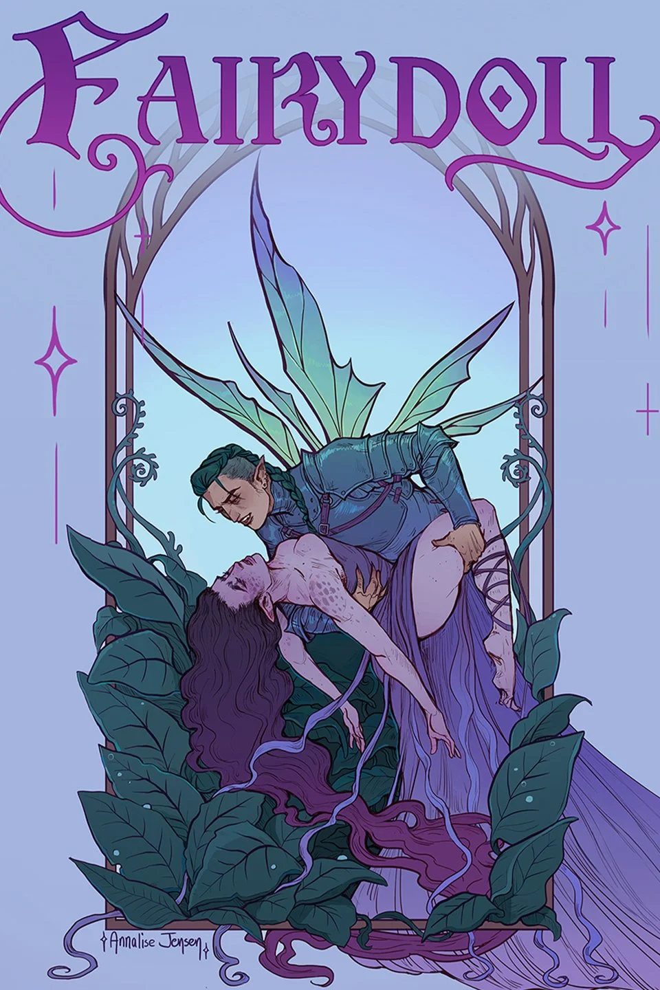 Fairydoll is a fantasy story with fairies, horror, toxic fairy princesses, and hunky fairy lady knights. A little taste of enemies-to-lovers, a lil taste of horror and monster romance. A whole chunk of queer longing and fun outfits. What’s not to like?
